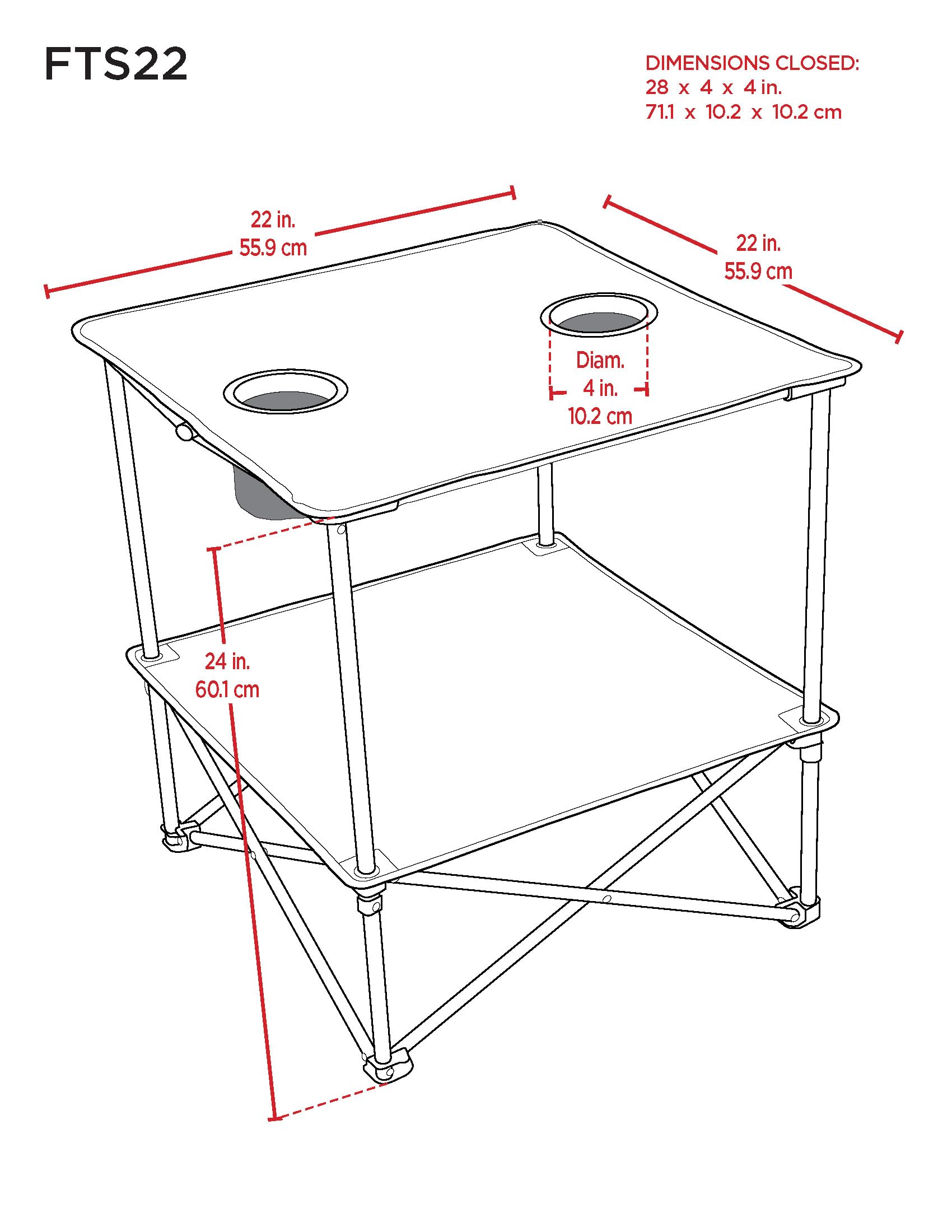 - DIMENSIONS: When open, the portable folding table measures 24" x 25" x 25" and has a weight capacity of 30lbs and also comes with a storage bag for convenient transport