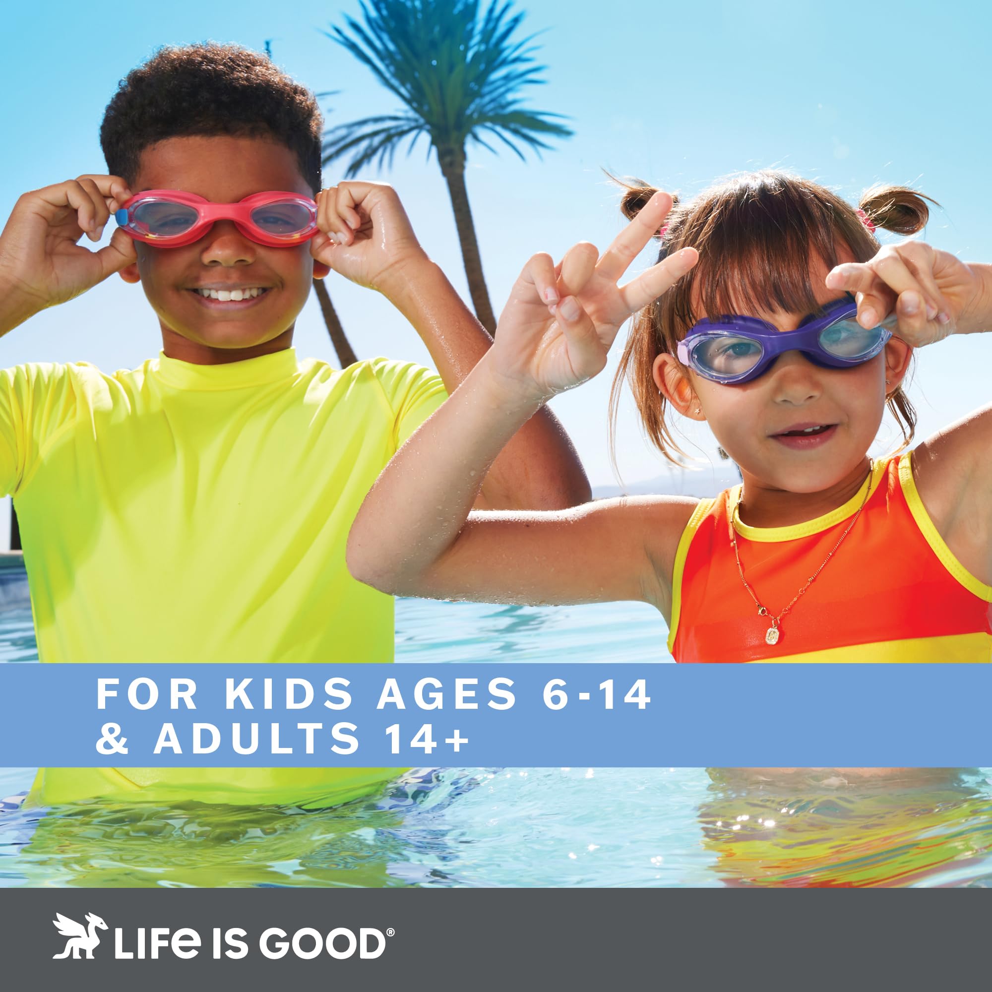 - Fog-Free Vision for Confident Swimming: The Life Is Good Kids Swim Goggles are fog-resistant, helping maintain clear underwater visibility while learning to swim, practicing strokes, or playing in the pool. Reduces lens fogging so swimmers can focus on technique and enjoyment