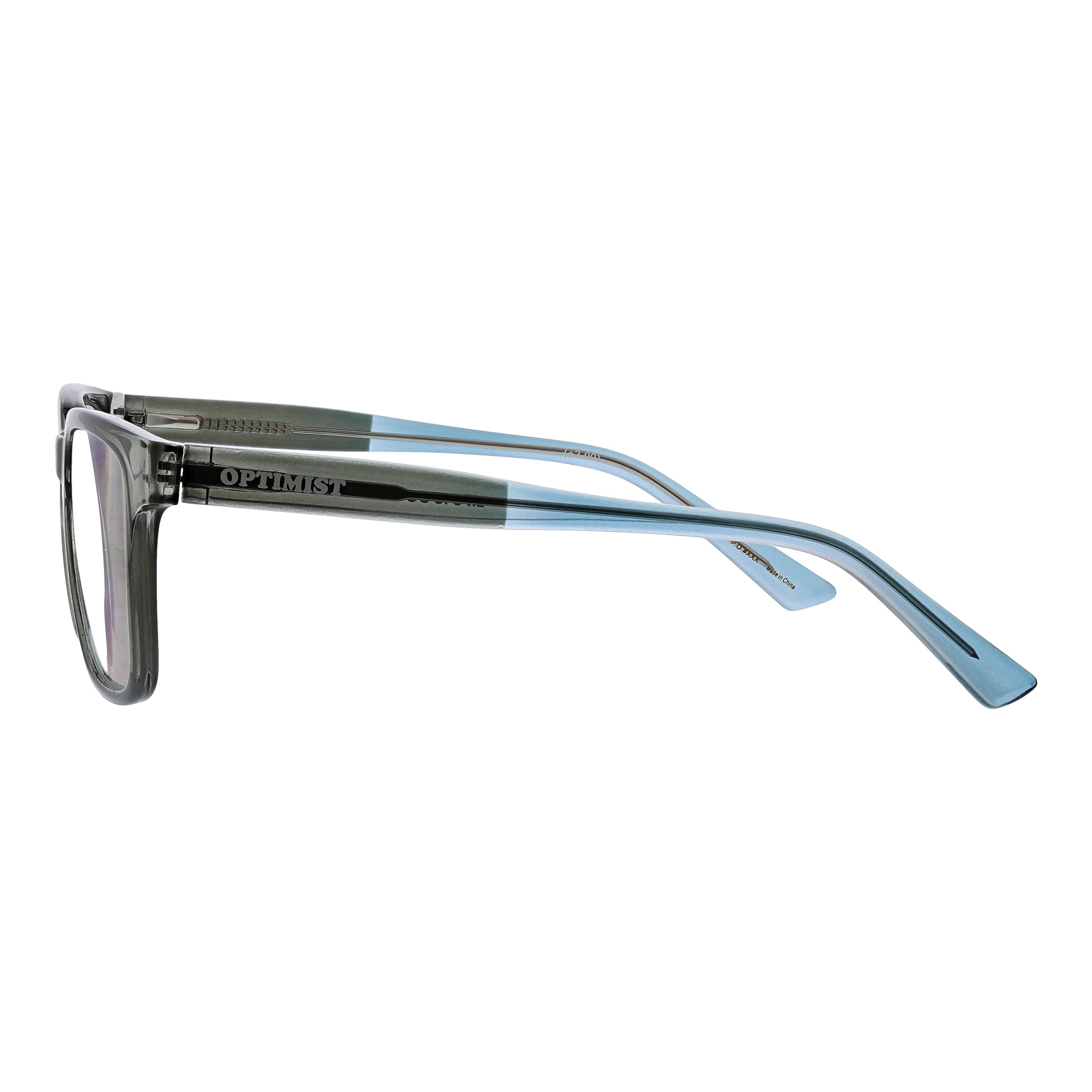 - Crystal green acetate front with color blocked blue temples
