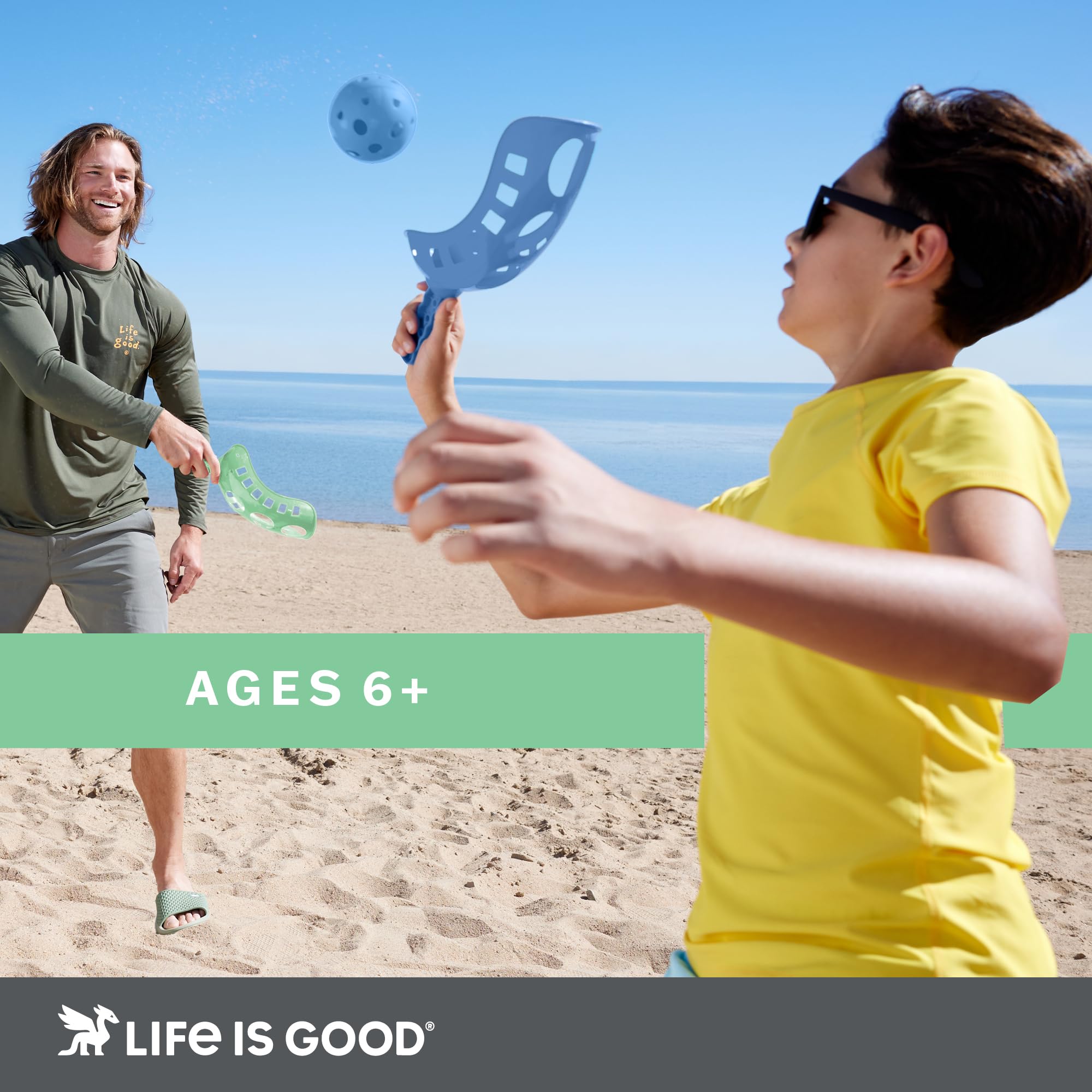 Life is Good Scoop Toss Game (Spearmint Green/Royal Blue), Beach & Backyard Catch Game with 2 Durable Scoops, 2 Balls & Storage Bag, Active Family Outdoor Games for Vacations, Parks & Picnics—