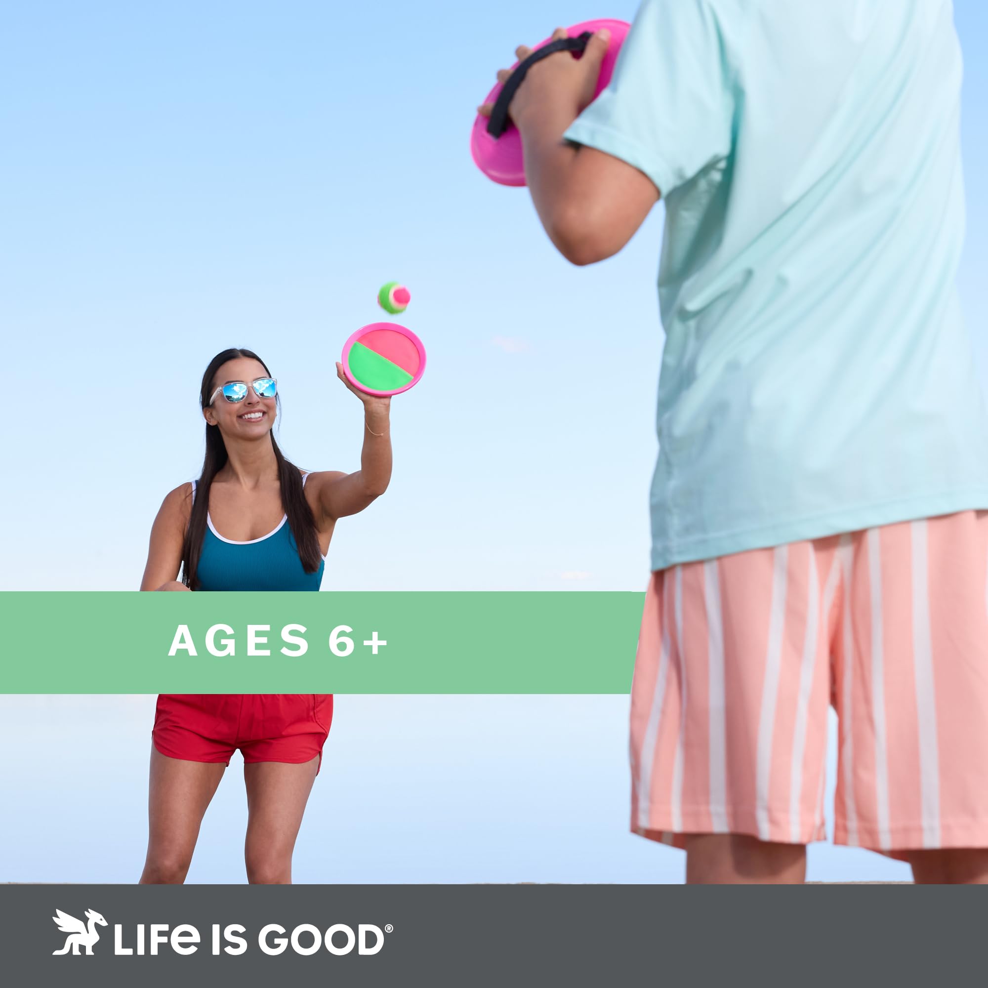 - Grip, Catch, and Play: The Life Is Good Toss and Catch Ball Set features Velcro paddle surfaces that grip the ball securely, making catches easier and throws more controlled. Players can jump straight into the game with no setup. Suitable for kids and adults