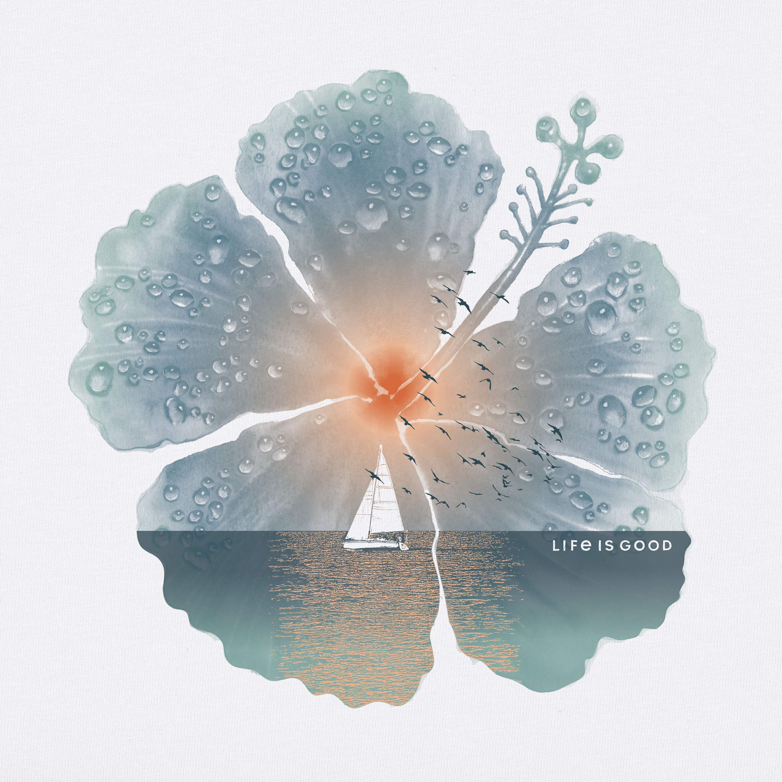 Life is Good Women's Crusher Tee Shirt, Short Sleeve Cotton Graphic T-Shirts, Hibiscus Sail Flower